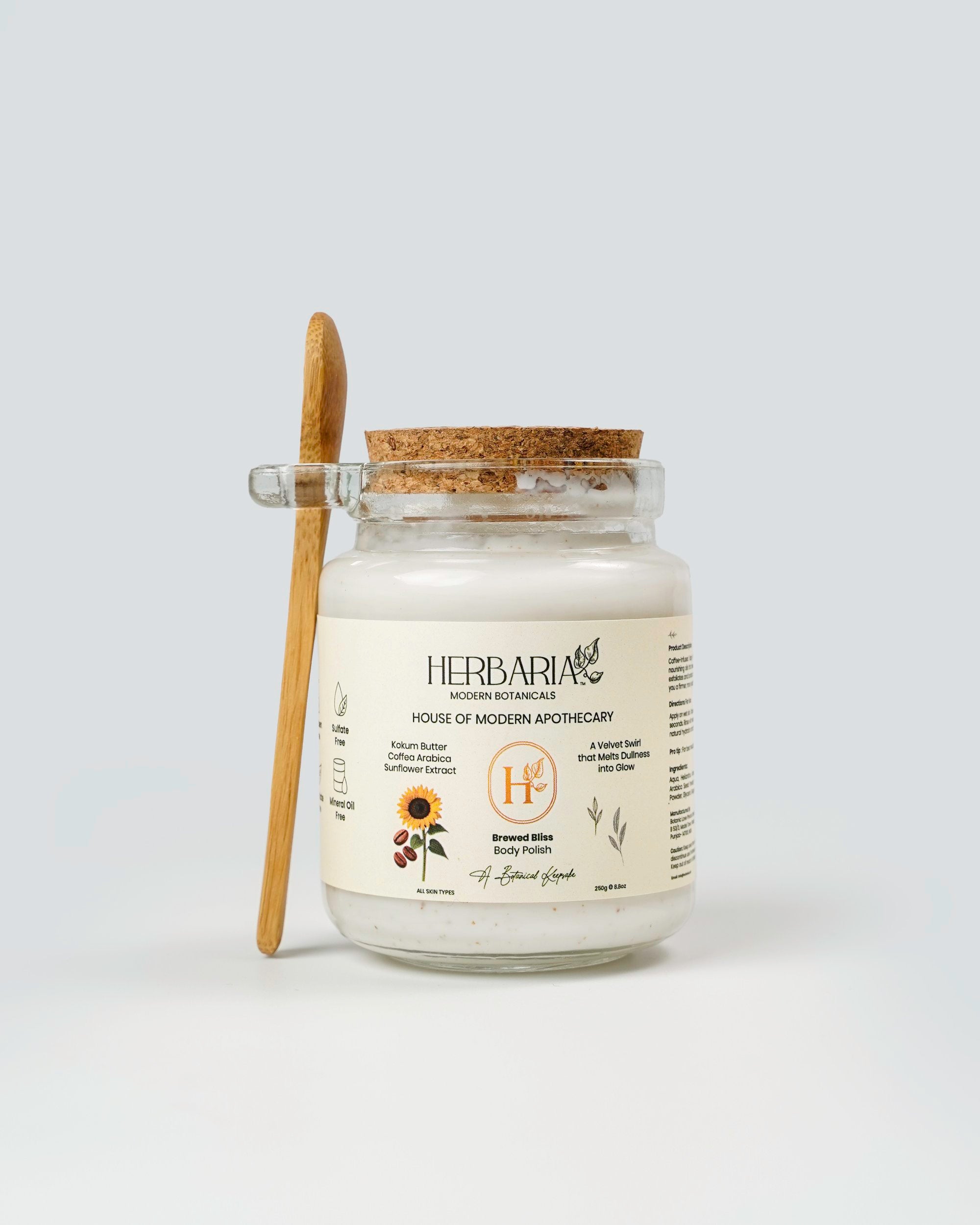 Suitable For - Dull Skin Enriched with Sunflower Extract, our Brewed Bliss Body Polish promotes a radiant complexion, leaving your skin glowing and revitalized Deep Hydration Indulge in the nourishing benefits of Kokum Butter, which provides intense hydration, leaving your skin feeling exceptionally smooth and supple Invigorating Exfoliation Crafted with Coffee Arabica, the body polish offers gentle exfoliation, revealing a refreshed and rejuvenated skin texture Aromatic Experience Immerse yourself in the delightful aroma, creating a sensorial experience that invigorates the mind and elevates your self-care routine Natural Goodness Formulated with carefully selected natural ingredients, our Brewed Bliss Body Polish is a celebration of skincare with a blend that pampers and enhances your skin's vitality.