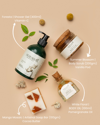 Celebrate every occasion with Herbaria’s luxury vegan skincare gift boxes, filled with indulgent milk baths, scrubs, oils, and butters. Thoughtfully curated, cruelty-free, and beautifully packaged, our gifts pamper the skin and delight the senses—perfect for birthdays, weddings, festivals, or simply showing love.