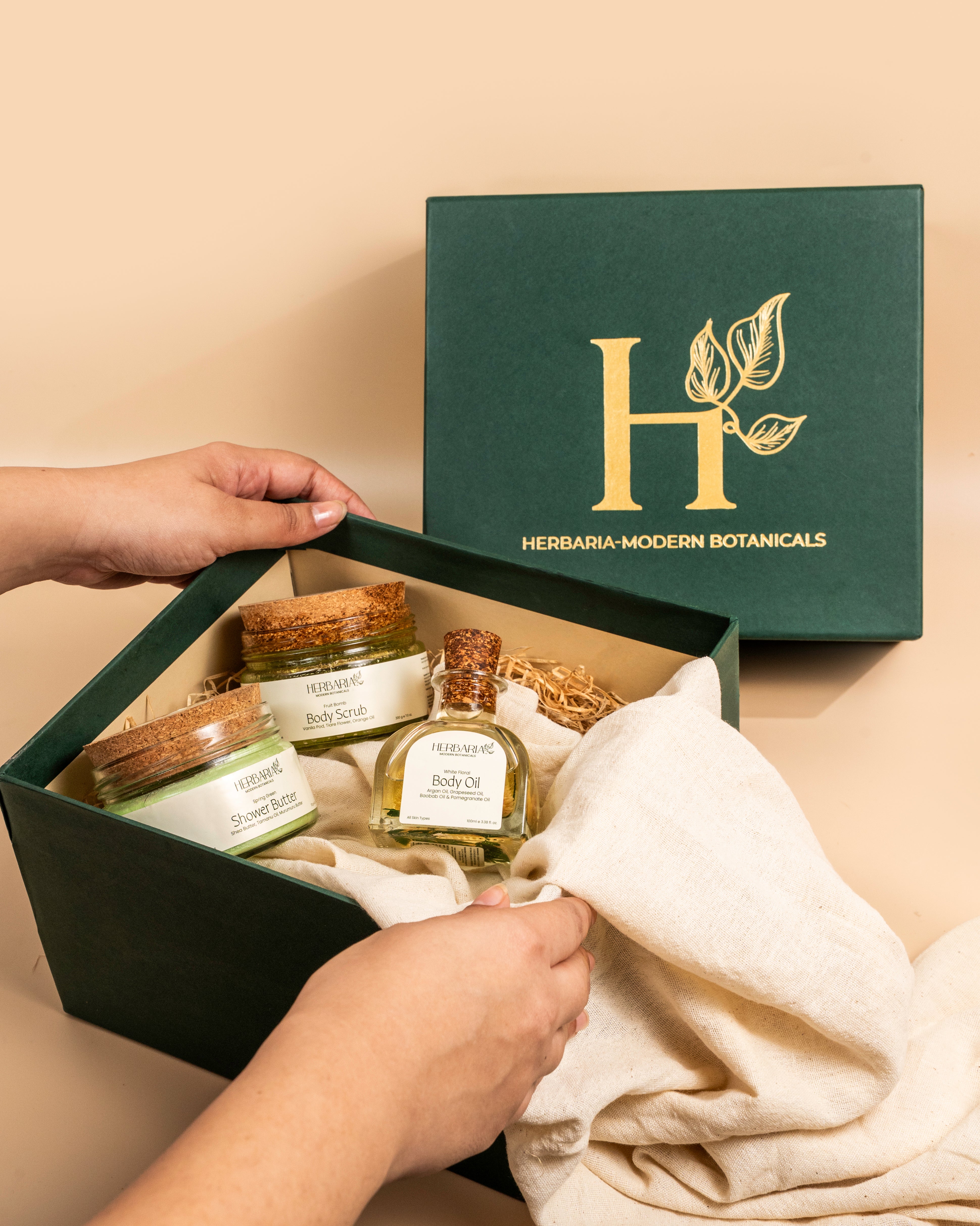 Quench your skin’s thirst with Herbaria’s Hydration Bouquet Gift Box, a 3-step luxury ritual designed to cleanse, exfoliate, and deeply nourish. Featuring White Floral Body Oil, Spring Green Shower Butter, and Fruit Bomb Body Scrub, this vegan skincare set is crafted to keep your skin soft, radiant, and beautifully hydrated.