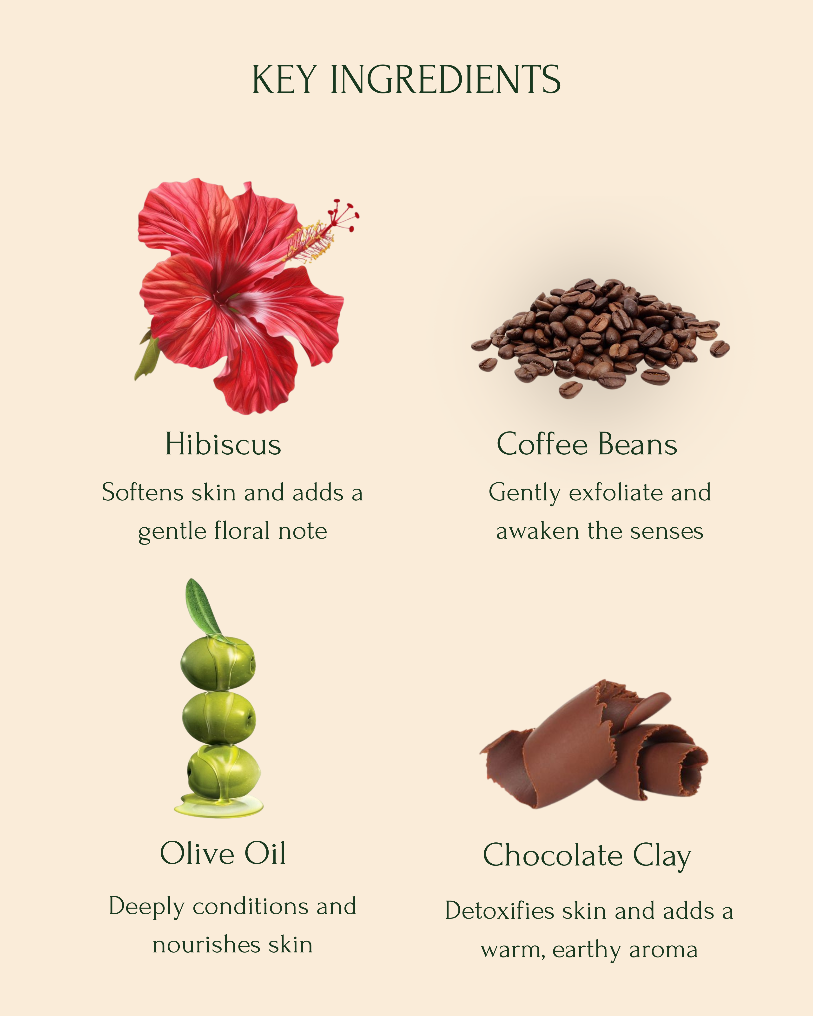 Active Ingredients Coffea Arabica | Kokum Butter | Theobroma Cacao