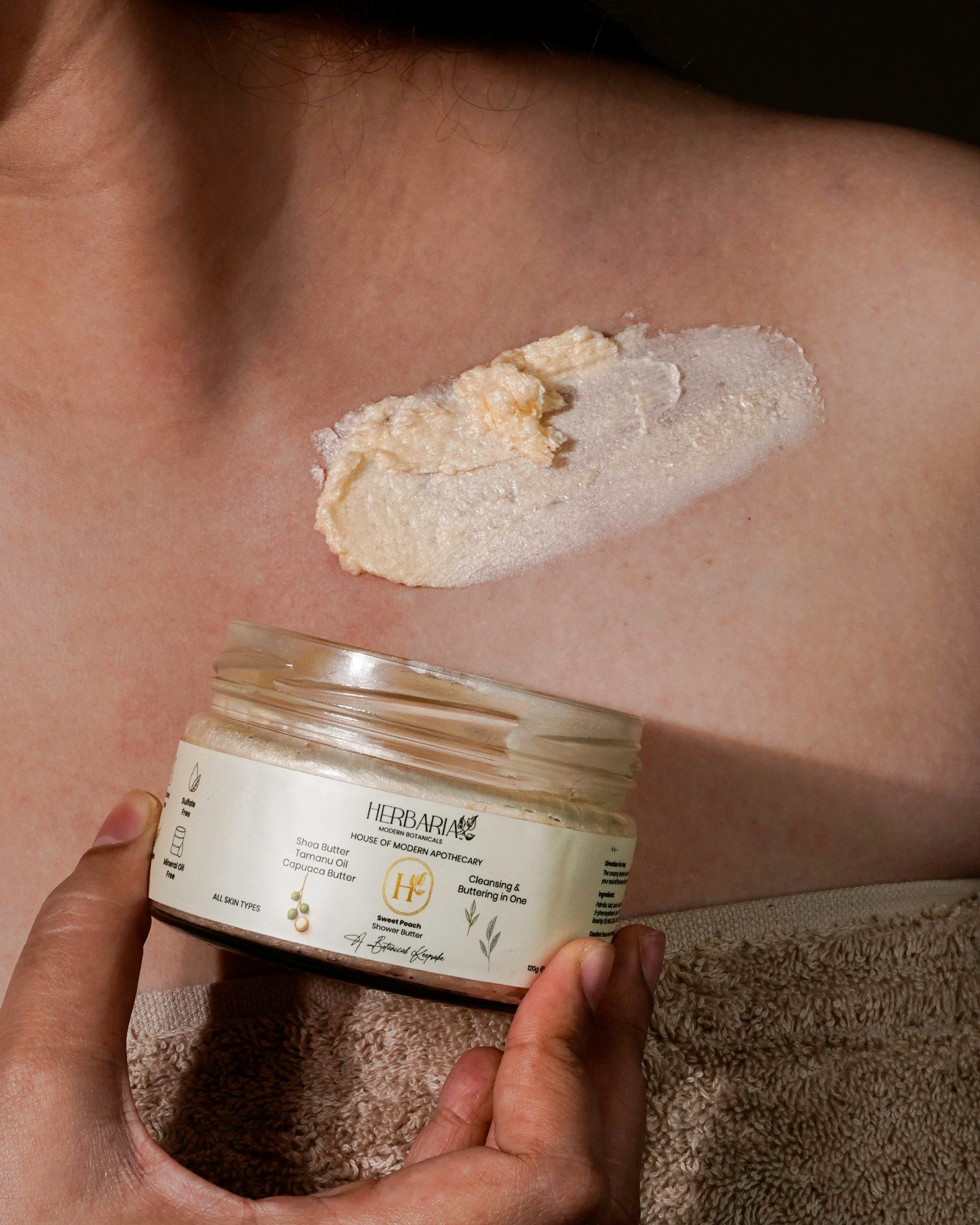Suitable For - Dry Skin The rich and moisturizing texture helps combat dryness, leaving the skin hydrated and supple Dullness Infused with nourishing ingredients, shower butter can revitalize and bring a radiant glow to dull-looking skin Rough Texture Coarse or rough skin can benefit from the exfoliating properties, promoting smoother and softer skin Flakiness The hydrating components help reduce flakiness, promoting a smoother and more even skin texture Lack of Nourishment Shower butter typically contains natural ingredients that provide essential nutrients, promoting overall skin health Sensitive Skin These formulations are gentle and suitable for sensitive skin, providing moisture without irritation.